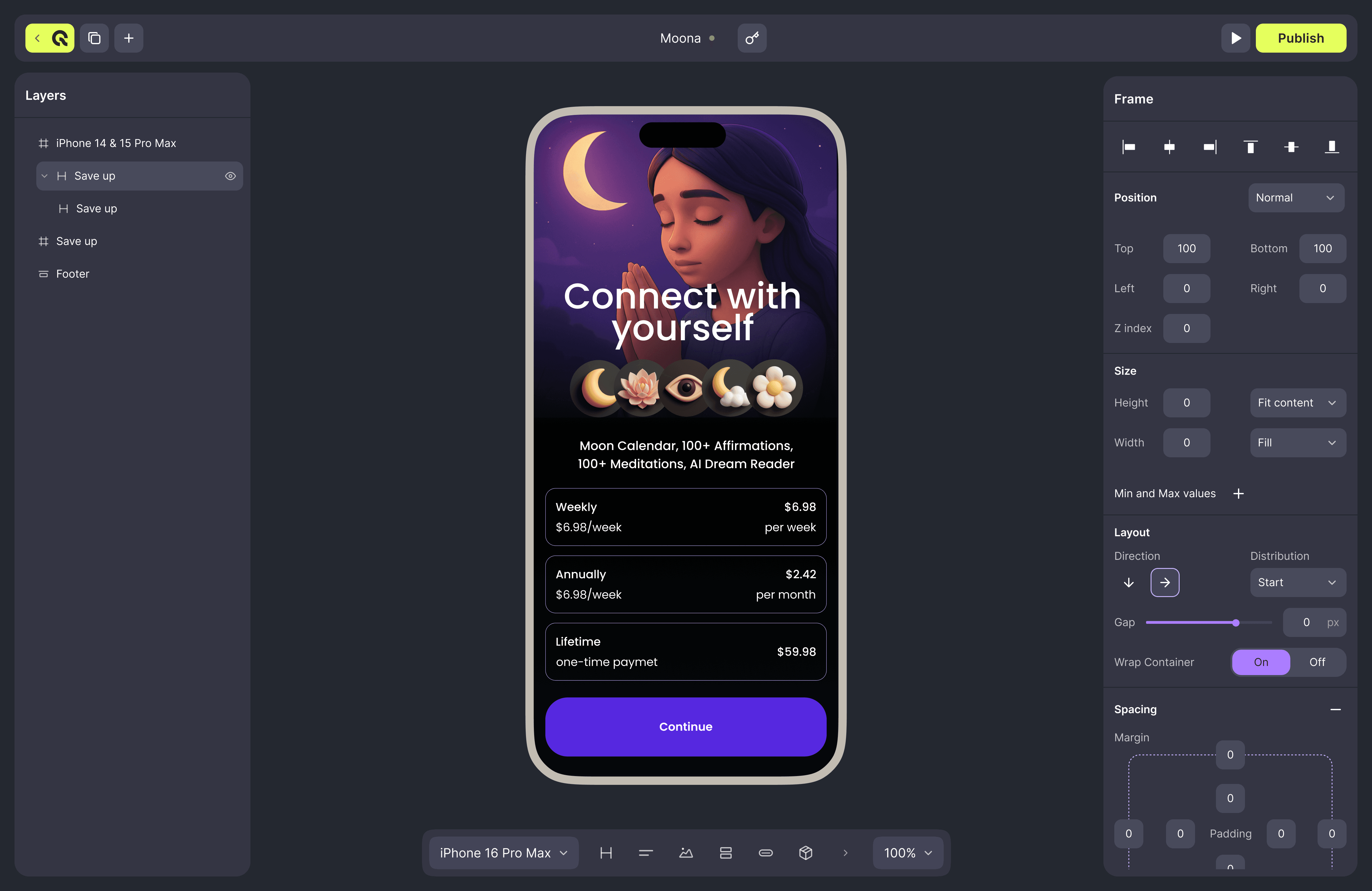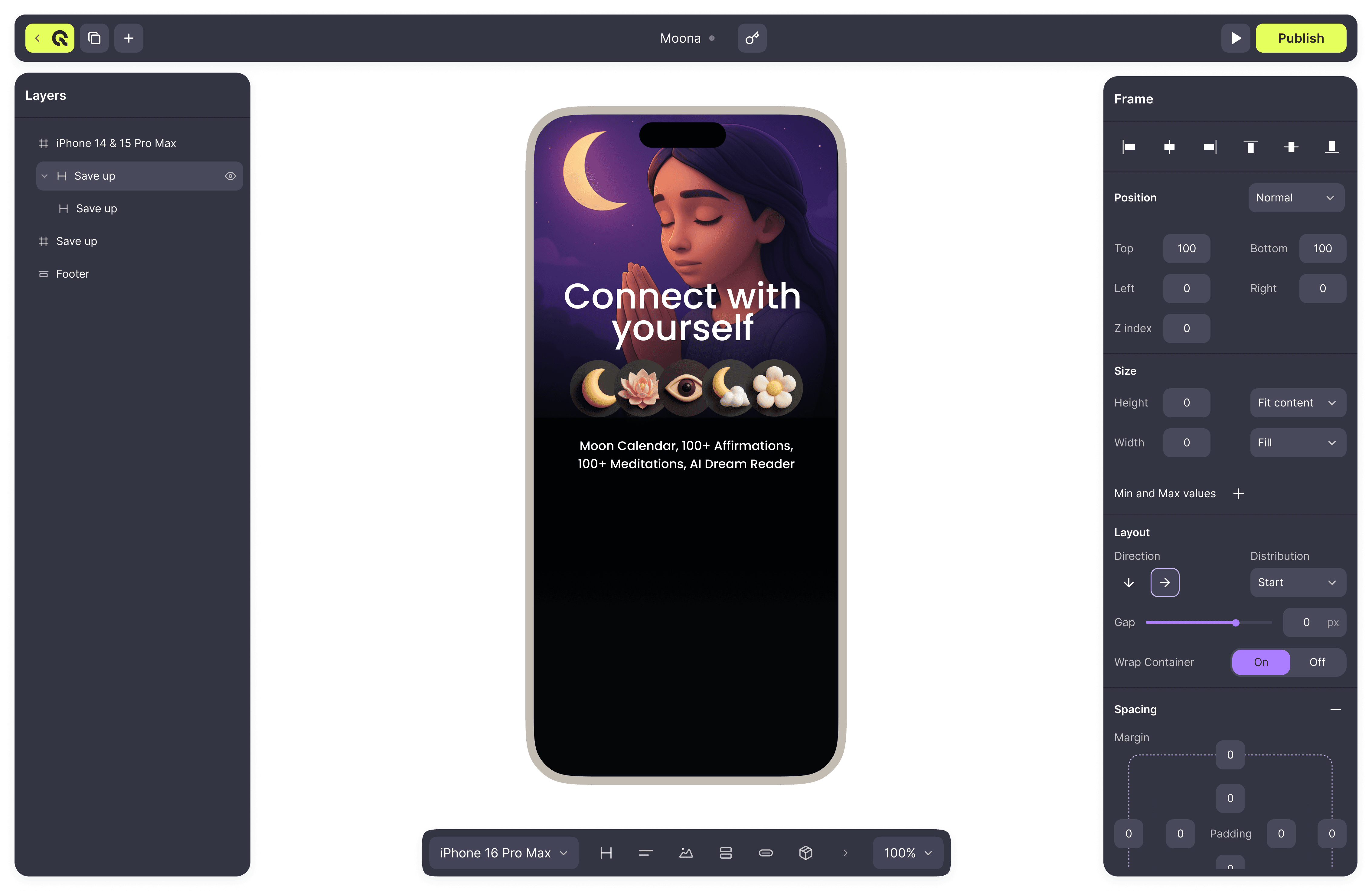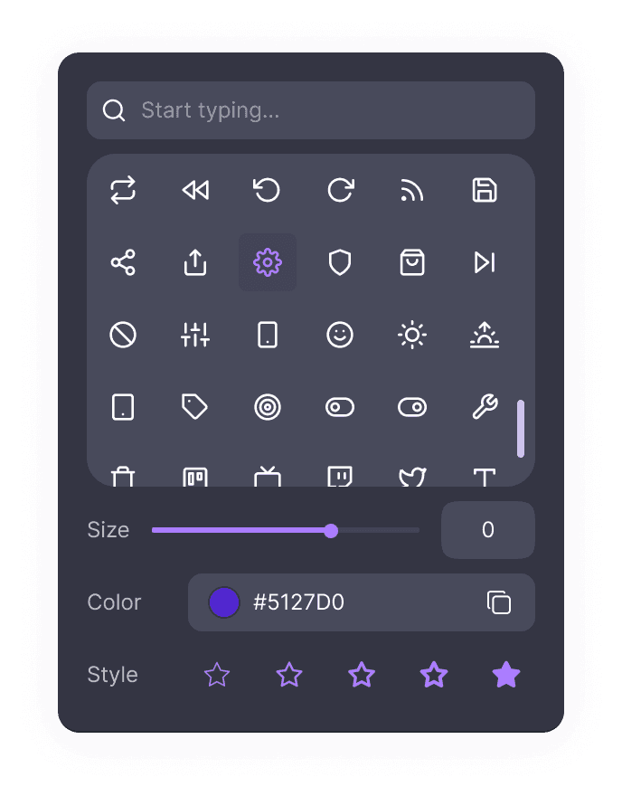 Choose from a rich icon library or drop in images, Lottie files, logos, and product visuals. Make every screen feel on-brand, instantly